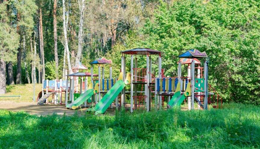 На территории санатория для детей оборудована просторная игровая площадка. Она заботливо размещена в тени, чтобы дети не находились под палящим солнцем.