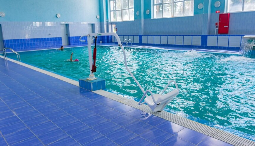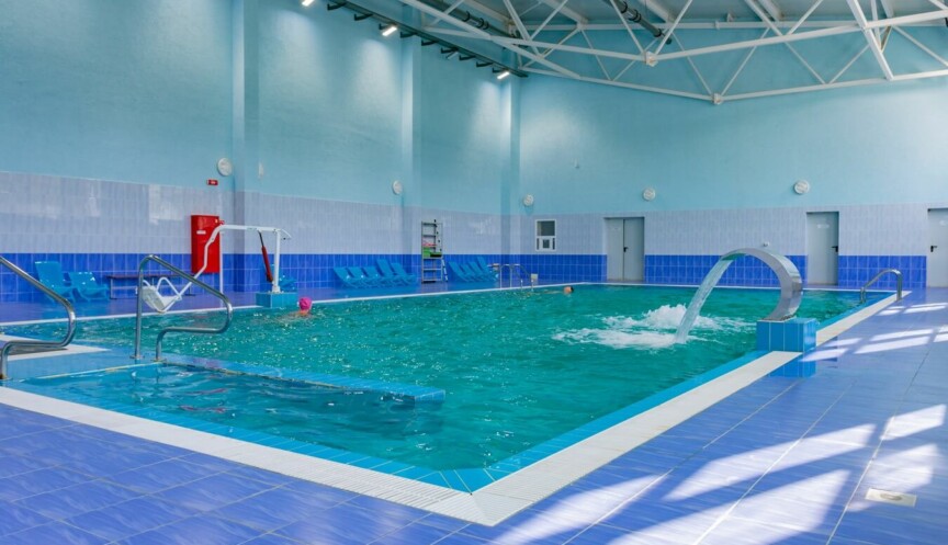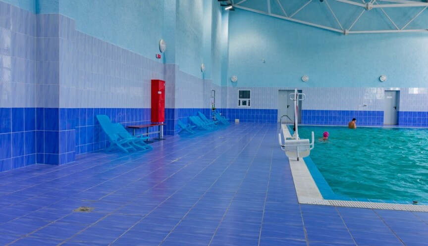 В санатории имеется круглогодичный крытый бассейн с пресной водой. Бассейн находится во 2 корпусе, длина чаши бассейна 27 метров. Посещение бассейна входит в стоимость путевки.